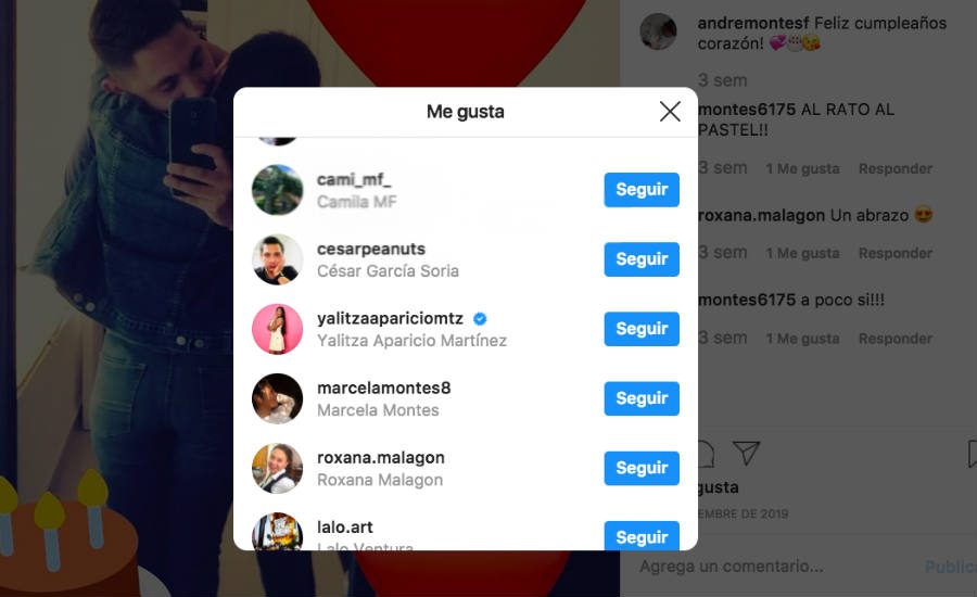 Su cuenta en Instagram cuenta con tan solo algunas imágenes que subió desde el 22 de noviembre, aunque quizás borró su historial. Tanto él sigue a Yalitza, como ella a él.