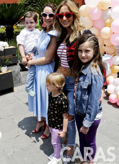 Andrea Torre y Geraldine Bazán junto a sus hijas.