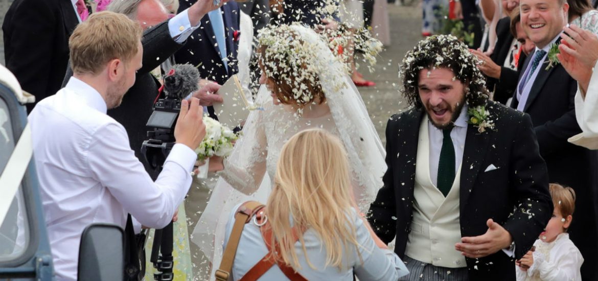 Kit Harington y Rose Leslie este sábado tras su boda en Escocia