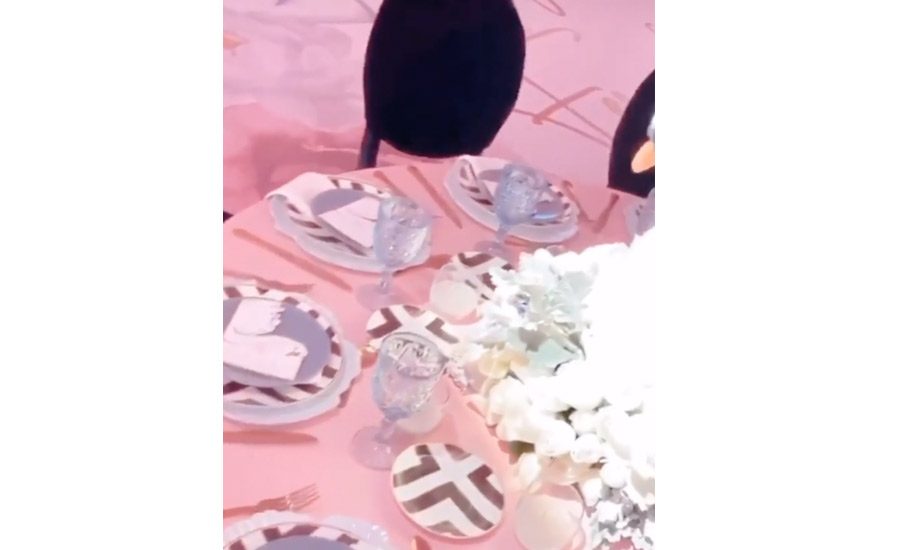Los invitados disfrutaron de la fiesta que contó con vajillas color blanco, copas de cristal y cisnes blancos, así como sillas de color morado con almohadones