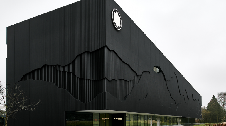 Este edificio, con su icónica combinación de los colores de la marca Montblanc en su silueta oscura con tonalidades de blanco en el interior, ha sido diseñado por Nieto Sobejano Arquitectos inspirándose en el patrimonio de Montblanc y presenta un concepto que quiere ser un homenaje a la forma histórica de los estuches de los artículos de escritura.