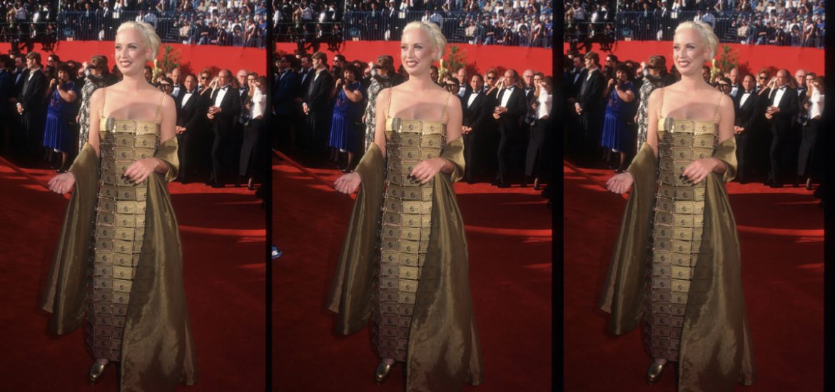 Diseñadora de vestuario australiana que aquel año ganó el Oscar en su categoría por The Adventures of Priscilla, Queen of the Desert. Lizzy apareció en la alfombra roja usando un vestido hecho con 254 tarjetas de crédito American Express Gold, ensambladas con alambre. Un look que a muchos enfadó por no “tomarse las cosas en serio”, pero que en realidad guarda dos peculiares datos detrás. Primero, el diseño pertenecía al vestuario no utilizado de la ganadora película —porque AMEX no lo permitió— y, segundo, la diseñadora no tenía dinero para usar otro vestido esa importante noche de su carrera. Un vestido de horror, una gran idea drag y una historia muy humana de finanzas; todo en el mismo paquete. (Foto: Getty Images)