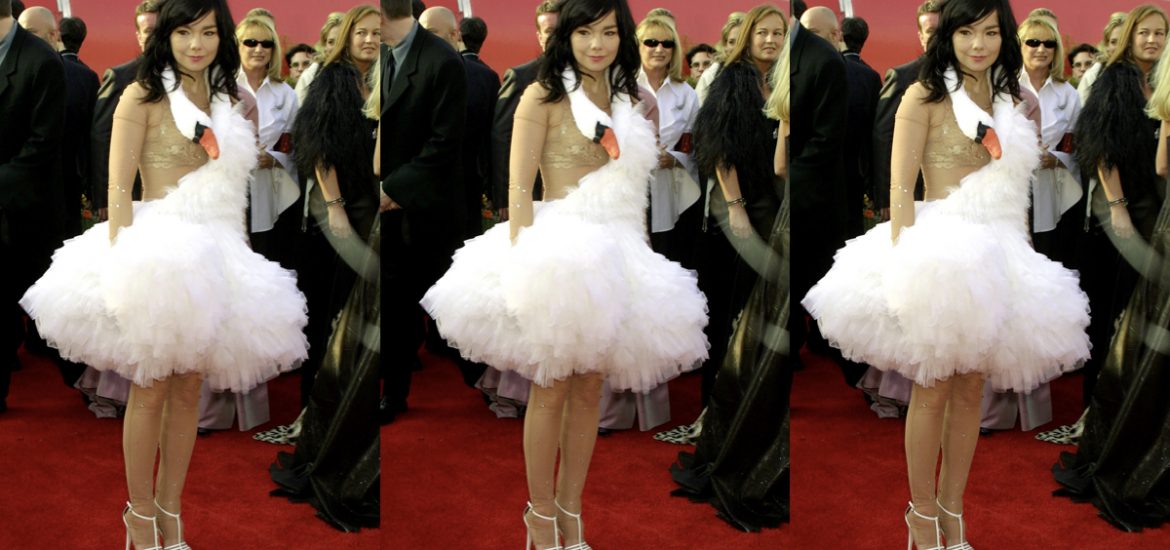 Finalmente, el look que sigue siendo disfraz de Halloween entre los millennials y Gen-X: el vestido de cisne de Marjan Pejoski. Un diseño volumétrico, escultural y que bien podría ser un pelucho carry on. Éste se enrollaba alrededor del cuello de Björk a modo de estola y “caía” sobre el resto del cuerpo de la cantante como un abrazo de la criatura. Una genial pero extraña (y hasta abominable) elección que ha pisado los museos del diseño en todo el mundo. (Foto: Getty Images)