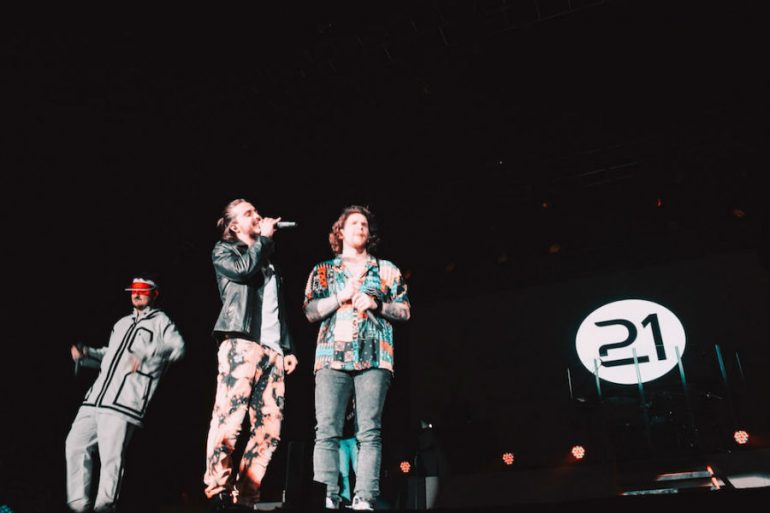 A las 21:00 horas comenzó el concierto de la banda colombiana, las luces se apagaron y en las pantallas empezaron a proyectar imágenes de los cantantes y el número 21 que se iluminó cuando empezó a sonar la canción ‘Heroe’