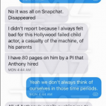 La actriz ha negado rotundamente la acusación, aunque en la página web de TMZ publica una serie de mensajes de texto supuestamente de Argento reconociendo los hechos: “Tuve sexo con él y se sintió raro. El público no sabe nada, solo lo que escribió The New York Times… El niño caliente me saltó”.
