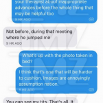 Con quien platicaba le respondió: “¿Qué pasa con las fotos tomadas en la cama?”, a lo que ella contestó: “Puedes ver mis tetas. Eso es todo. No significa nada”.