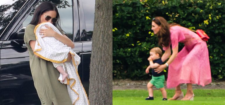 Sin duda las dos duquesas supieron como vestirse para un día de partido de polo con sus pequeños traviesos.