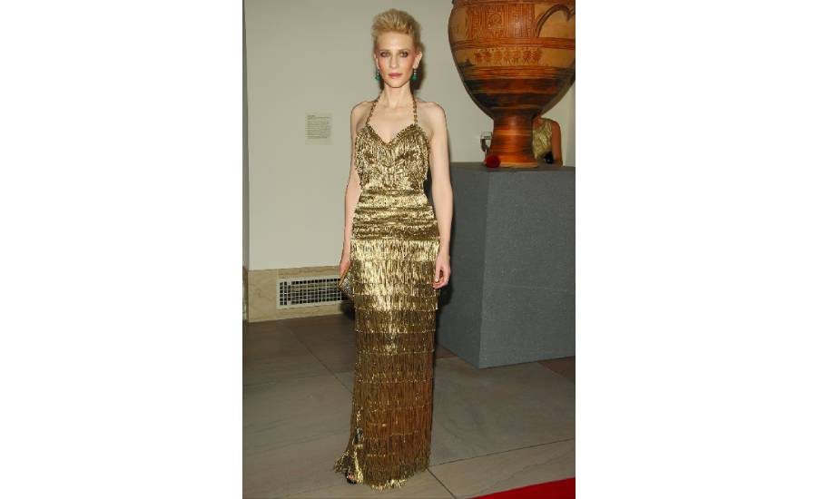 Para la edición de 2007, la cual tenía como temática “Poiret: Kin of Fashion”, concepto bajo el cual, rindieron homenaje al diseñador francés Paul Poiret, Cate Blanchet, vistió un diseño dorado de Balenciaga.Foto: Getty Images
