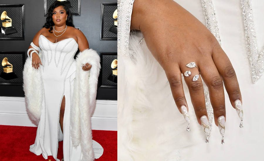 Las uñas de la cantante estaban literalmente goteando diamantes, o algo parecido a las piedras preciosas. Foto: Getty Images