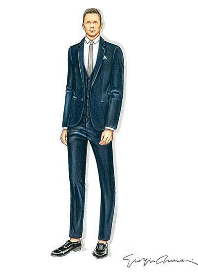 Pratt, de 39 años, llevaba un traje de dos botones con un chaleco a juego en color azul marino medianoche, que fue hecho a medida por Giorgio Armani.