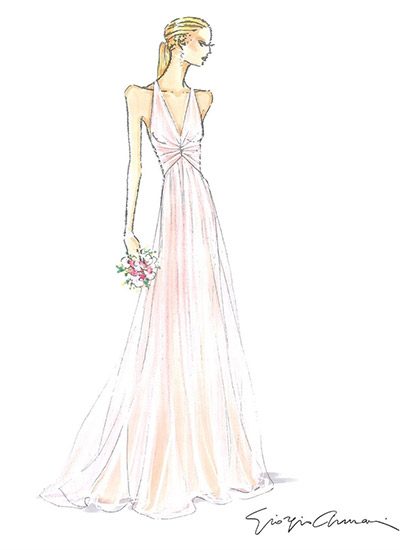 Las seis damas de honor de Schwarzenegger se vistieron con vestidos de gasa de seda color rosa de la firma Giorgio Armani.