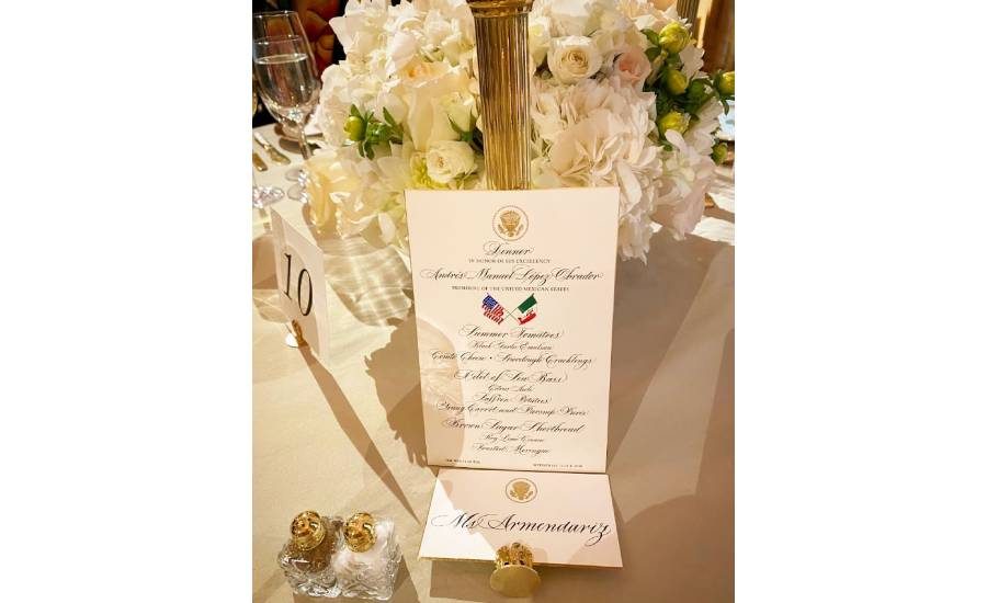 Los empresarios y mandatarios estadounidense y mexicano cenaron filete de robalo con papas al azafrán, puré de chirivia, zanahorias jóvenes y alioli de cítricos, entre otras cosas.