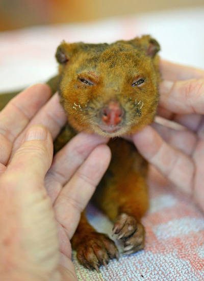 Blossom, la zarigüeya, fue admitida en el Hospital de Vida Silvestre #AustraliaZoo después de ser atrapada en uno de los incendios forestales en otras partes de Queensland. Foto: Australia Zoo Wildlife Hospital