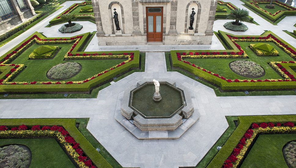 Alrededor de este jardín, bordeado por corredores con techos ligeros sostenidos sobre delgadas columnas de hierro, Maximiliano de Habsburgo escuchaba y dictaba su correspondencia. Al igual que en los palacios europeos de la época, el jardín interior se integraba visualmente a un parque exterior.
