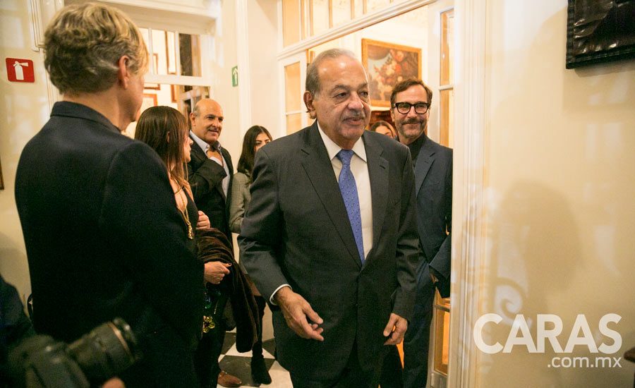 Carlos Slim en el cóctel de la cafetería de Leonora Tovar