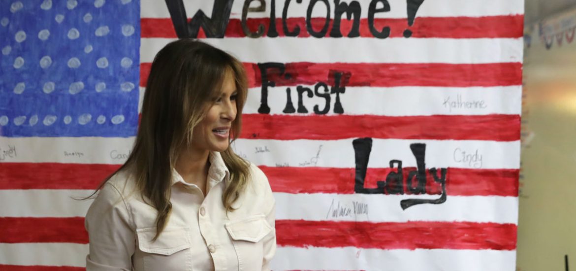 La primera dama ya no llevaba la gabardina cuando desembarcó unas horas más tarde en McAllen (Texas) para visitar uno de los centros de detención para menores inmigrantes.