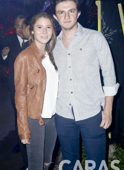 Olegario Vázquez y María Ángeles en la fiesta de Mercedes Benz del GP