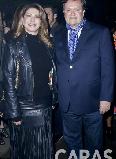 Olegario Vázquez y María Ángeles en la fiesta de Mercedes Benz del GP