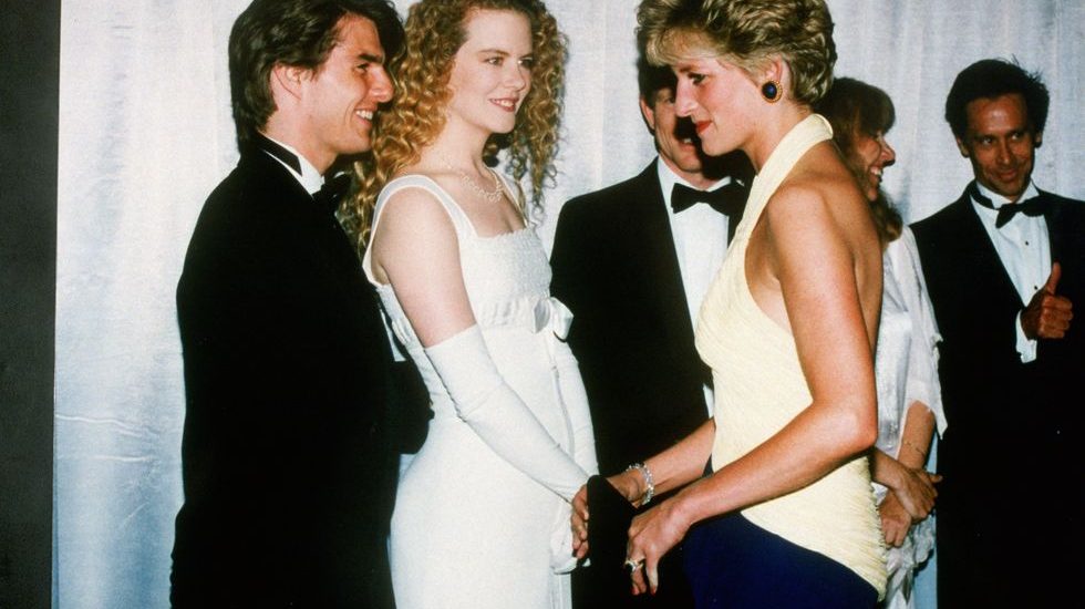 1992. La famosa pareja conoció a la princesa en el estreno de “Far and Away”. Una joven Nicole Kidman vistió un vestido blanco sin mangas con guantes hasta el codo, muy royal. (Foto: Getty Images)