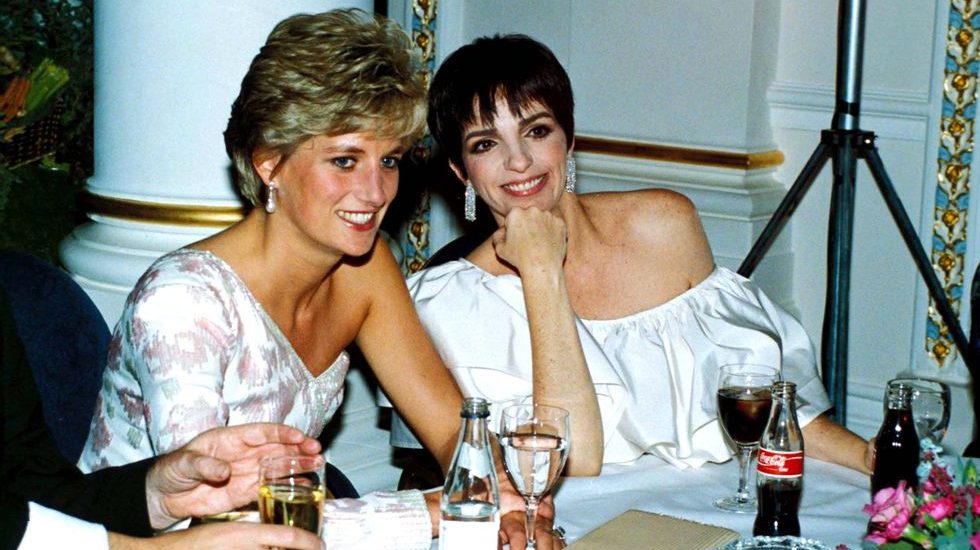 1991. Liza Minnelli optó por un vestido blanco de hombros descubiertos para el estreno de “Stepping Out” en Londres, mientras que la princesa lució un vestido de noche de una manga rosa y blanco por Catherine Walker. (Foto: Getty Images)