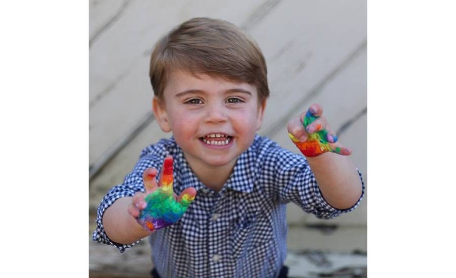 En las imágenes se puede ver al pequeño sonriendo para la cámara con las manos cubiertas de pintura multicolor.