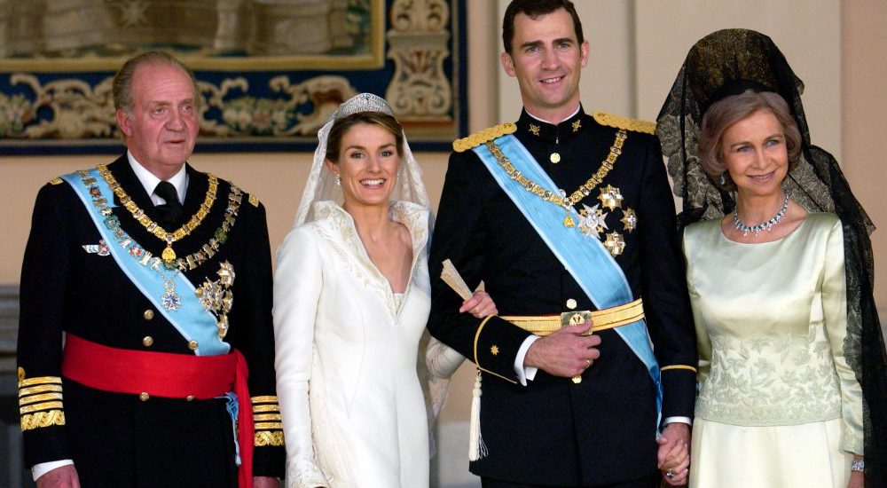 El príncipe heredero Felipe de España, Príncipe de Asturias, con su esposa la princesa heredera Letizia y sus padres, el Rey Juan Carlos de España y la Reina Sofía en el Palacio Real.