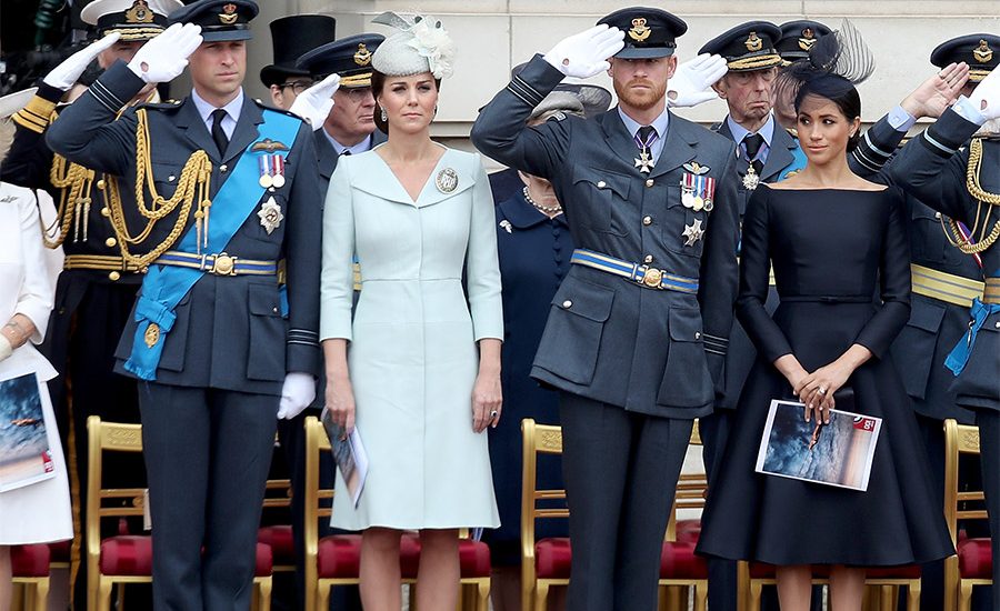 El príncipe William, Kate Middleton, el príncipe Harry y Meghan Markle aparecieron juntos este martes en la celebración de los 100 años de Royal Air Force.