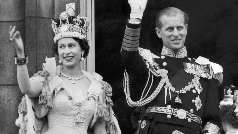 La recién coronada Reina Isabel II saluda desde el balcón del Palacio de Buckingham, junto a su esposo. (Foto: Getty Images)