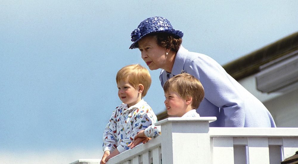 La Reina Isabel II en el Royal Box con sus nietos, el príncipe William y el príncipe Harry durante un partido de polo en Windsor. (Foto: Tim Graham Photo Library via Getty Images)